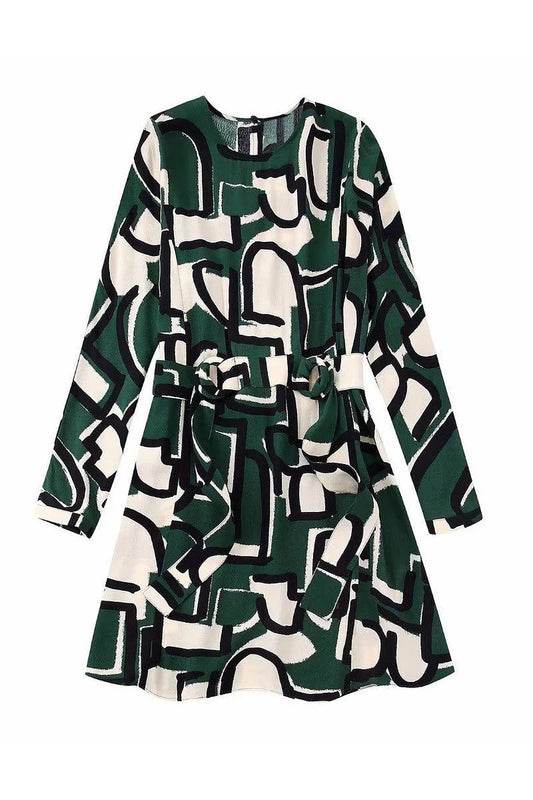 Ex Zara Frida Green Abstract Printed Midi Dress