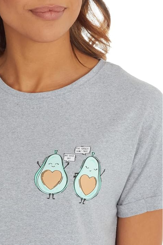 Ladies Jersey Cotton Short Sleeve Cropped Pyjamas Avocado