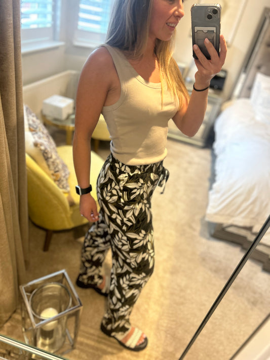 Ladies Paper Bag Waist 3/4 Cropped Summer Trouser Stone