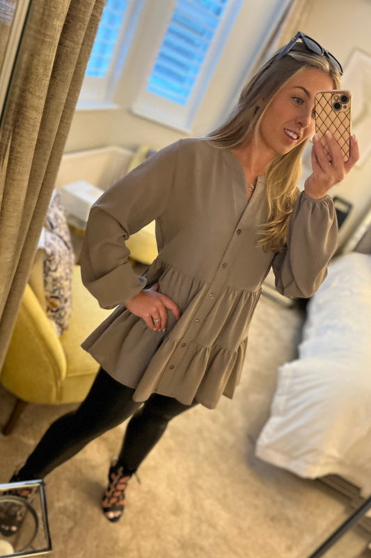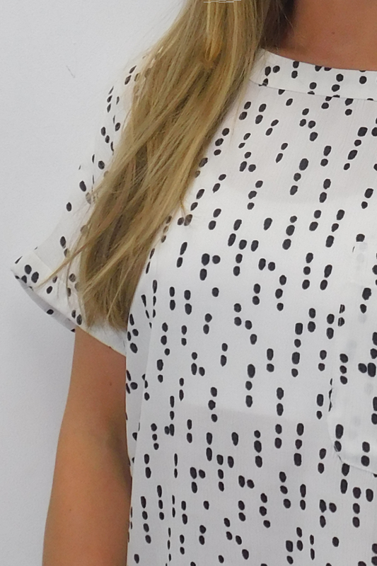 Ladies Short Sleeve Ivory & Black Geometric Polka Blouse Top