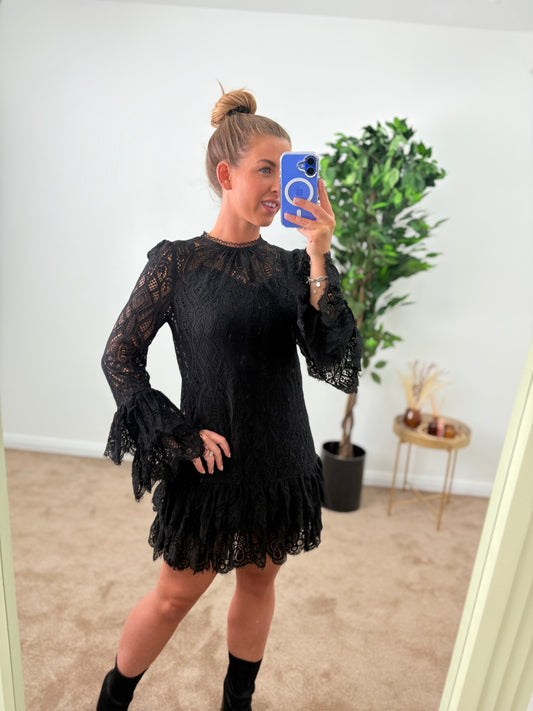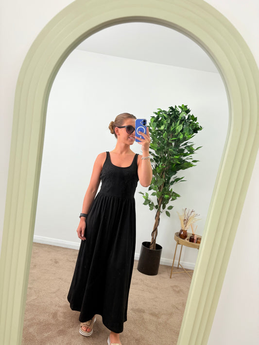 EX-New Look Frill Strap Black Linen Blend Mini Dress/Tunic