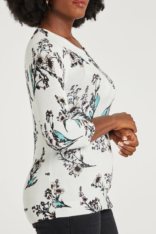 Ex M&Co Floral Angel Sleeve Ruched Front Top