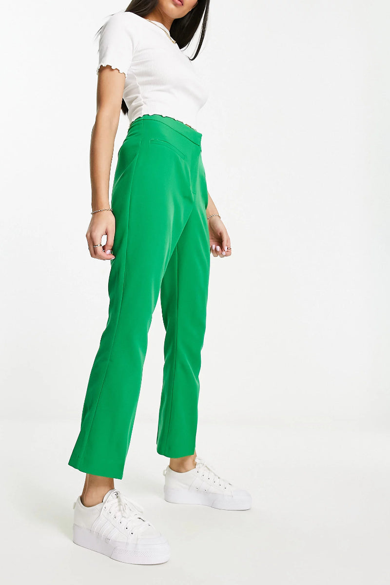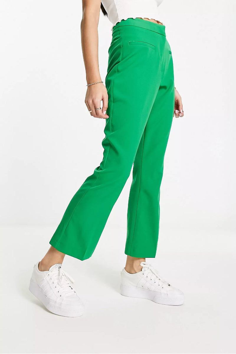 Delight with day-to-night looks that are both casual and glamorous. Dress to impress and combine natural femininity and an impressive attention to detail, you can easily solve the daily what-to-wear dilemma with these Miss Selfridge cropped flare trousers in Green.