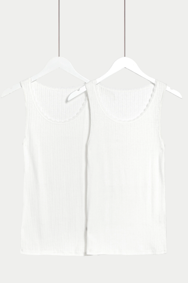 Stay toasty on cooler days with the insulating fabric of these thermal vests. Both feature a stylish textured design and scalloped trims along with a wider shoulder strap for extra comfort. Made with responsibly sourced viscose.