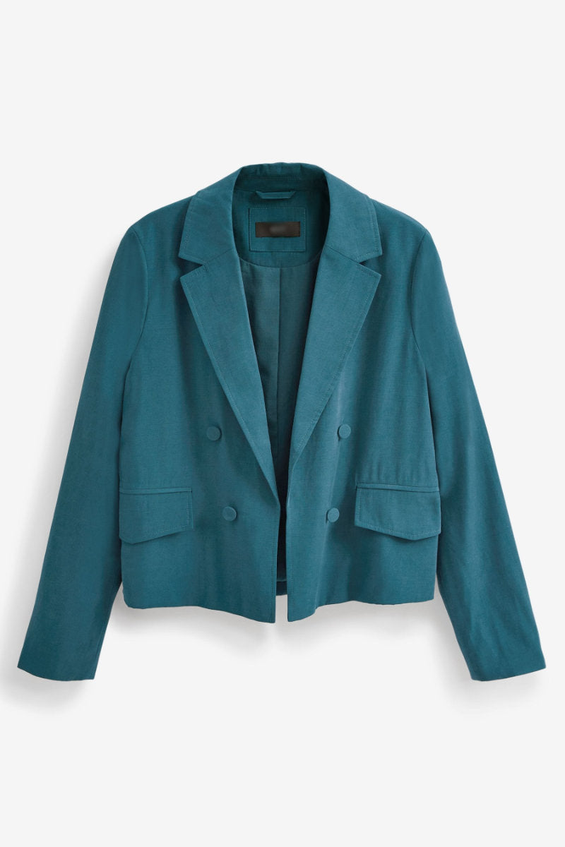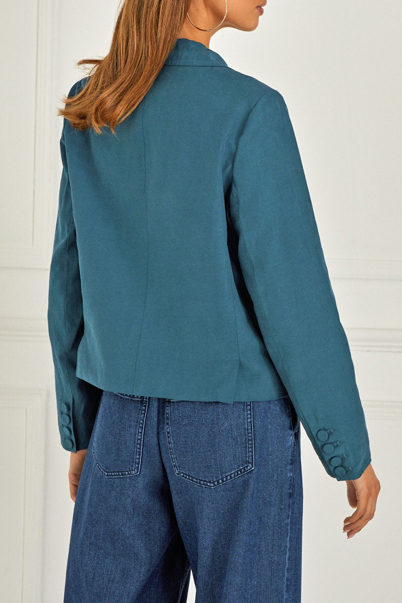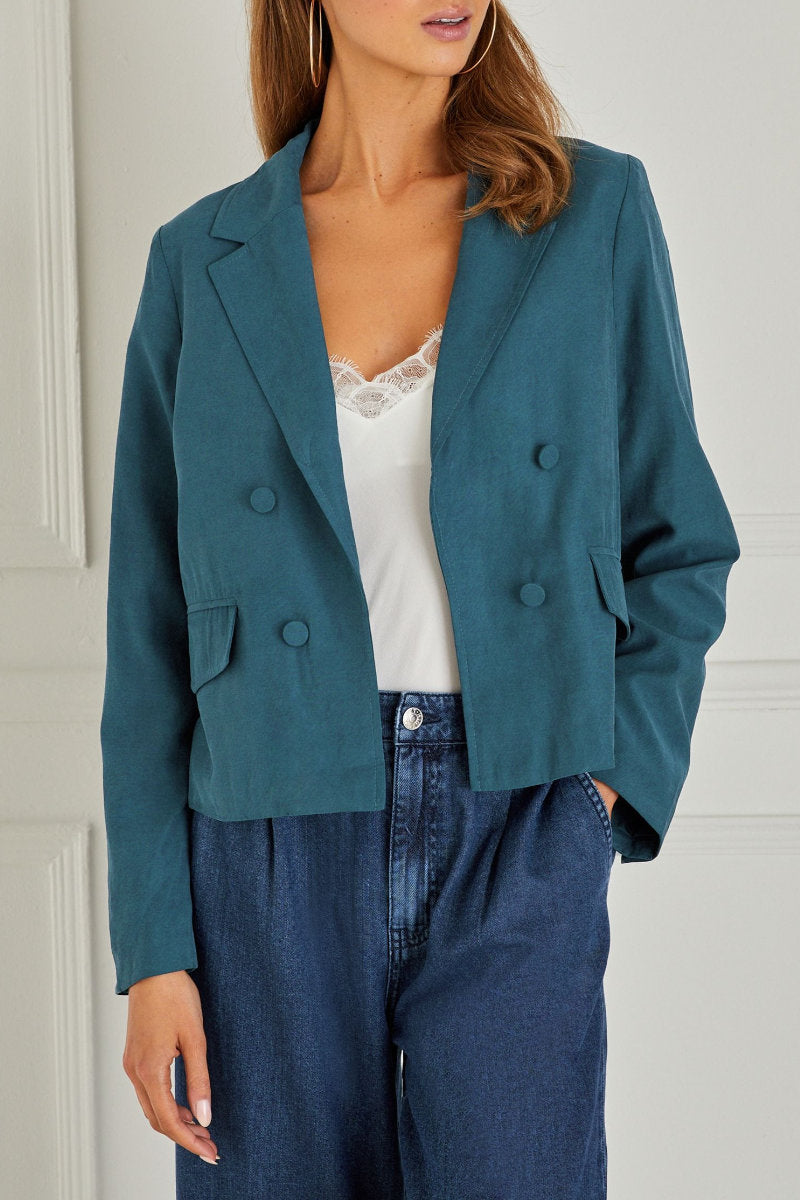 Famous Store Cropped Double Breasted Relaxed Fit Blazer Teal