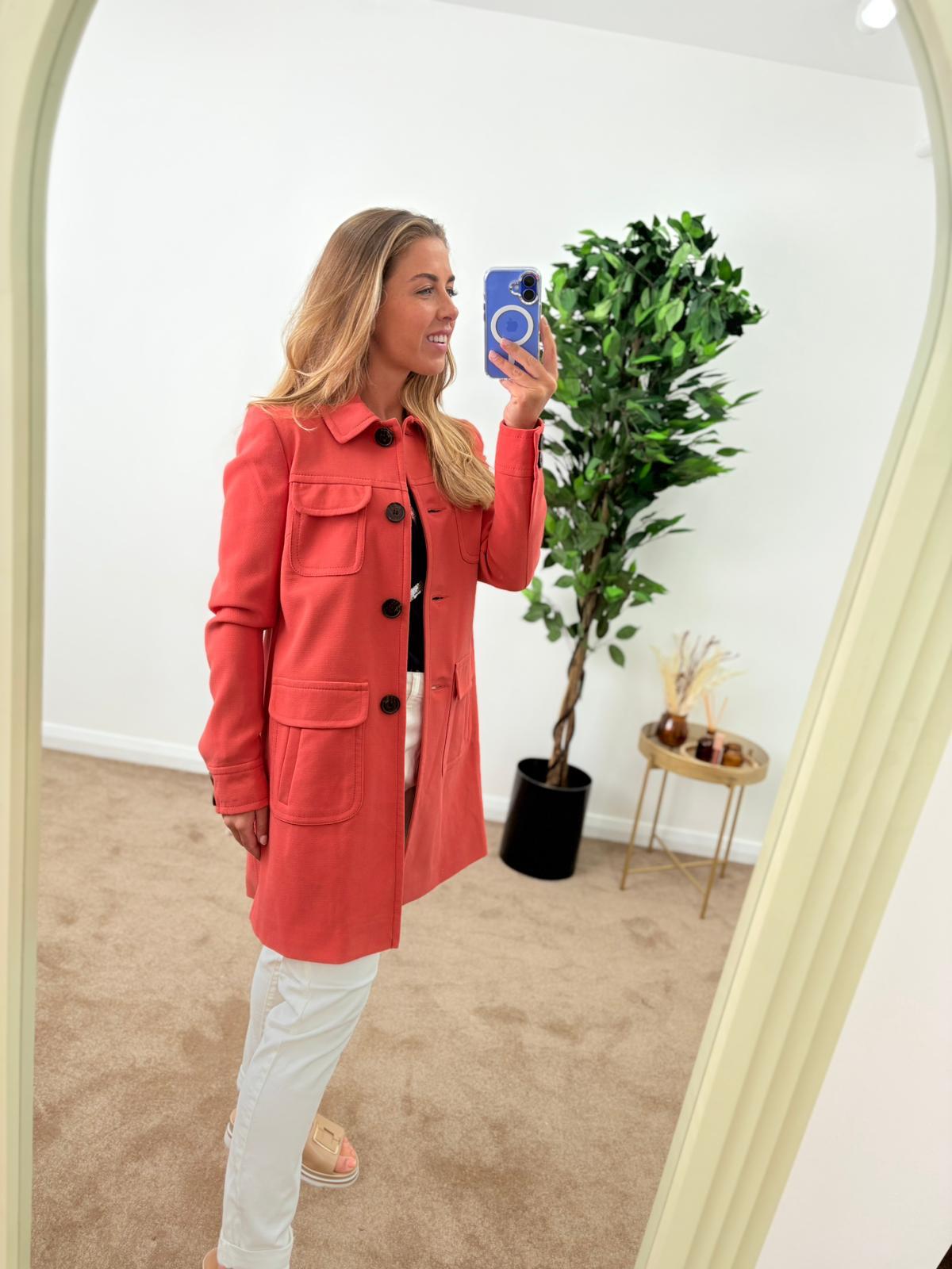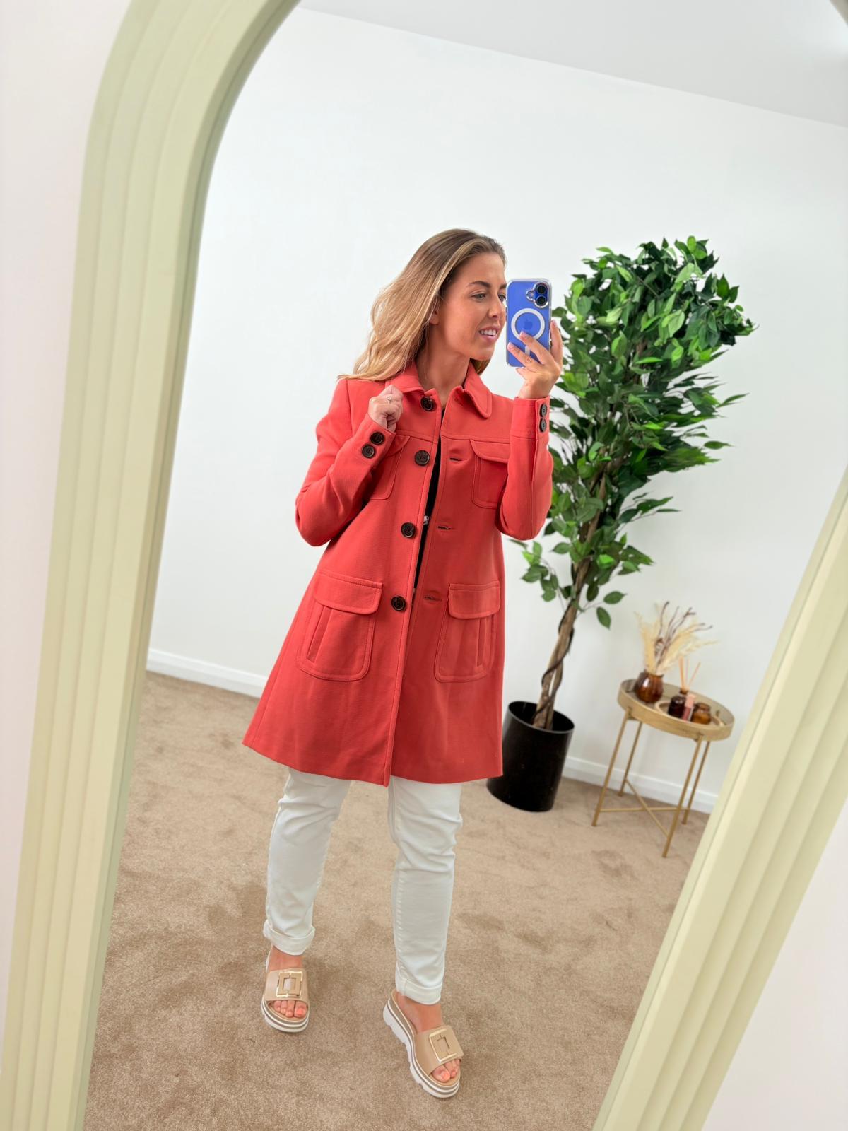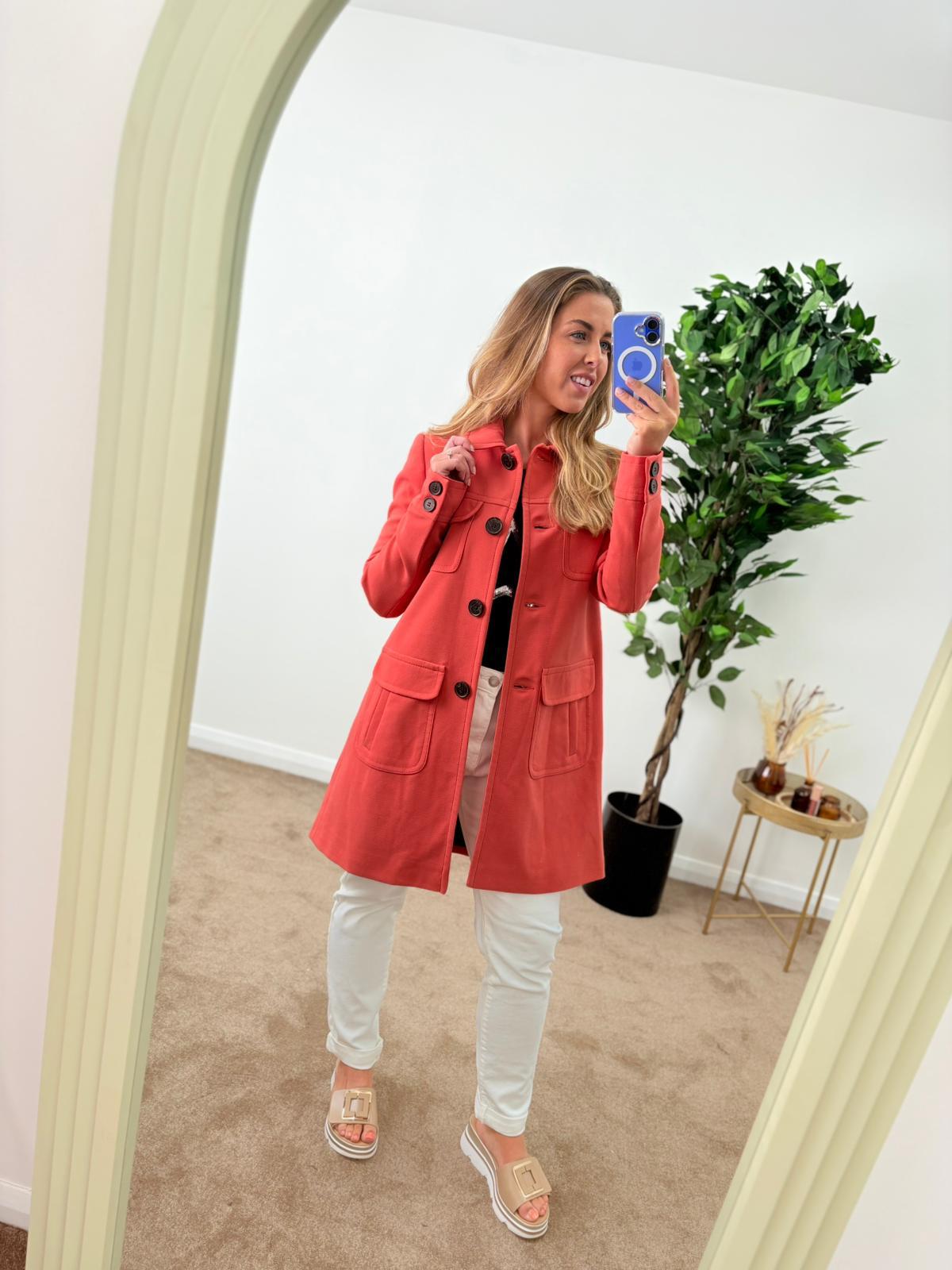 Elevate your wardrobe with our stunning Coral Peter Pan Collar Coat, designed to make a statement. This vibrant orange coat features a charming Peter Pan collar that adds a touch of whimsy to your look, while the tailored fit flatters your silhouette. Perfect for layering over your favorite outfits, it pairs beautifully with black pants for a chic, polished appearance. Stay stylish and cozy in any season with this must-have piece that effortlessly combines fashion and function.