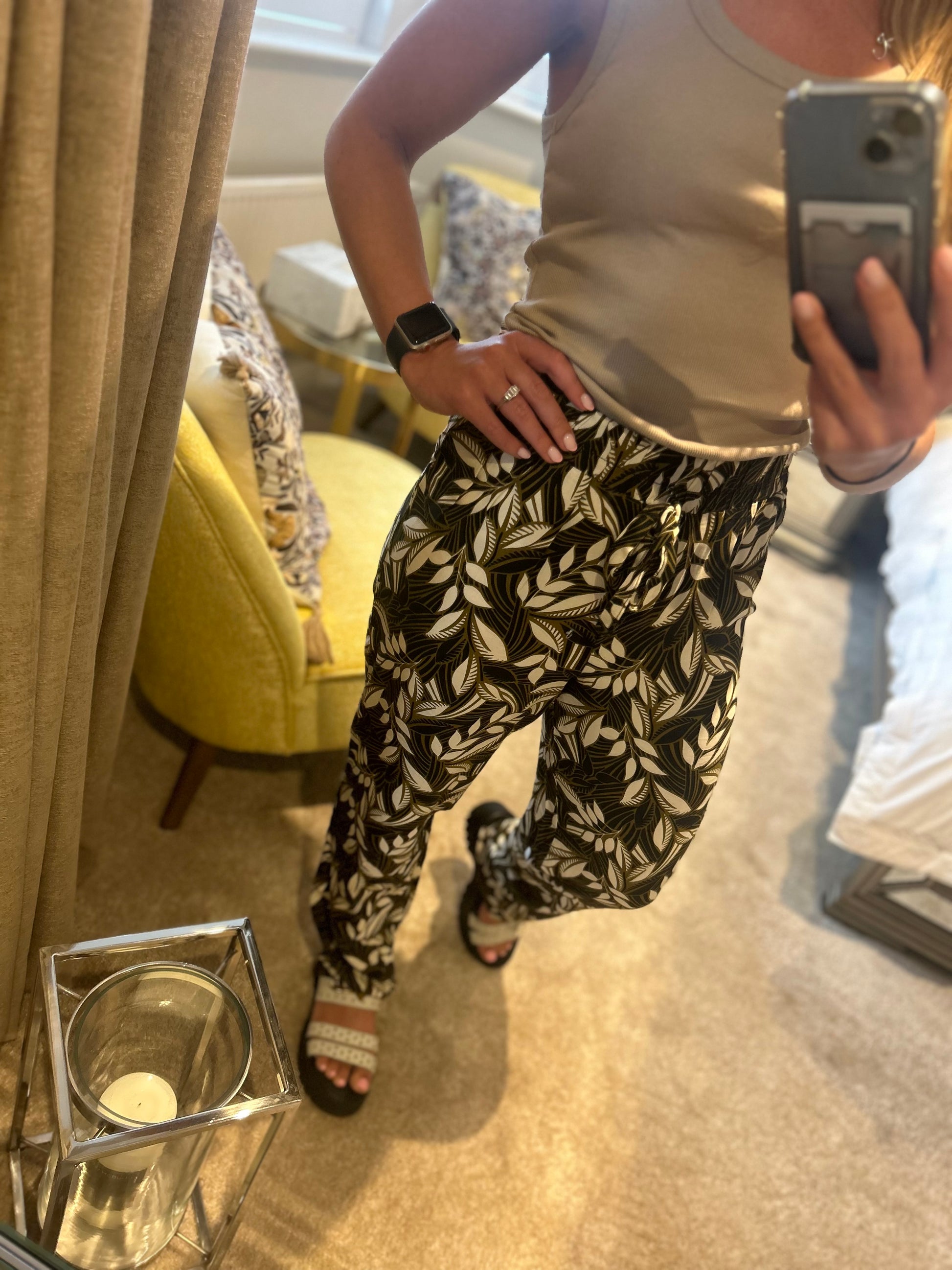 With their pretty print and trending colourway, these green floral trousers are a must for your wardrobe.