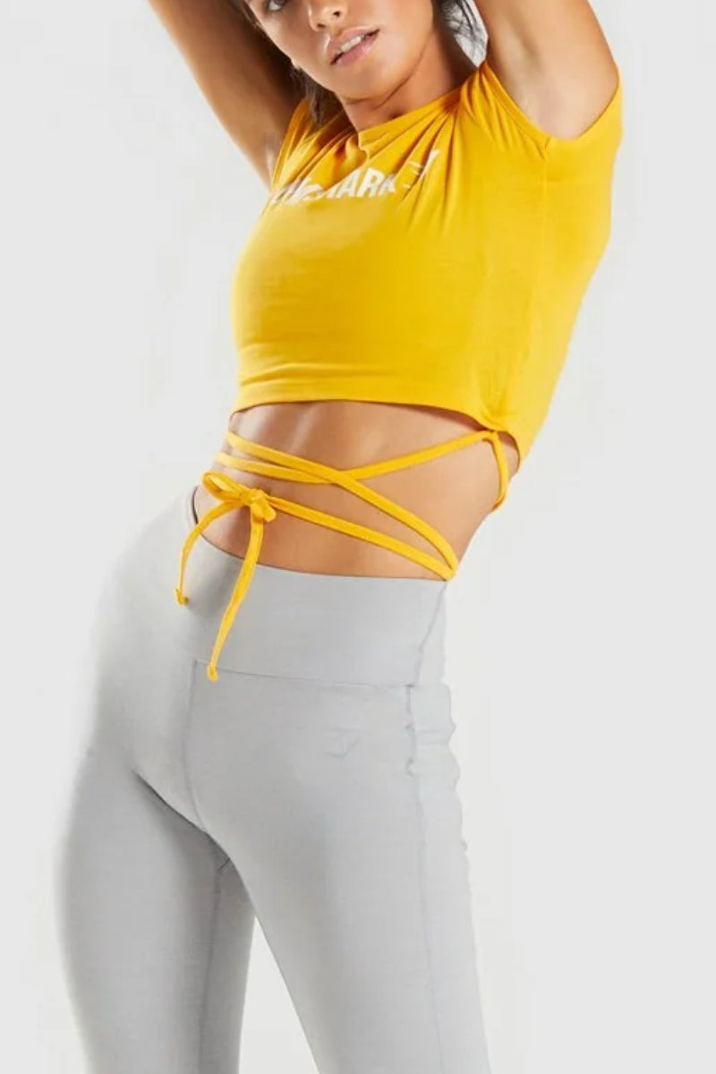 Gymshark Ribbon Capped Sleeve Crop Top Citrus Yellow
