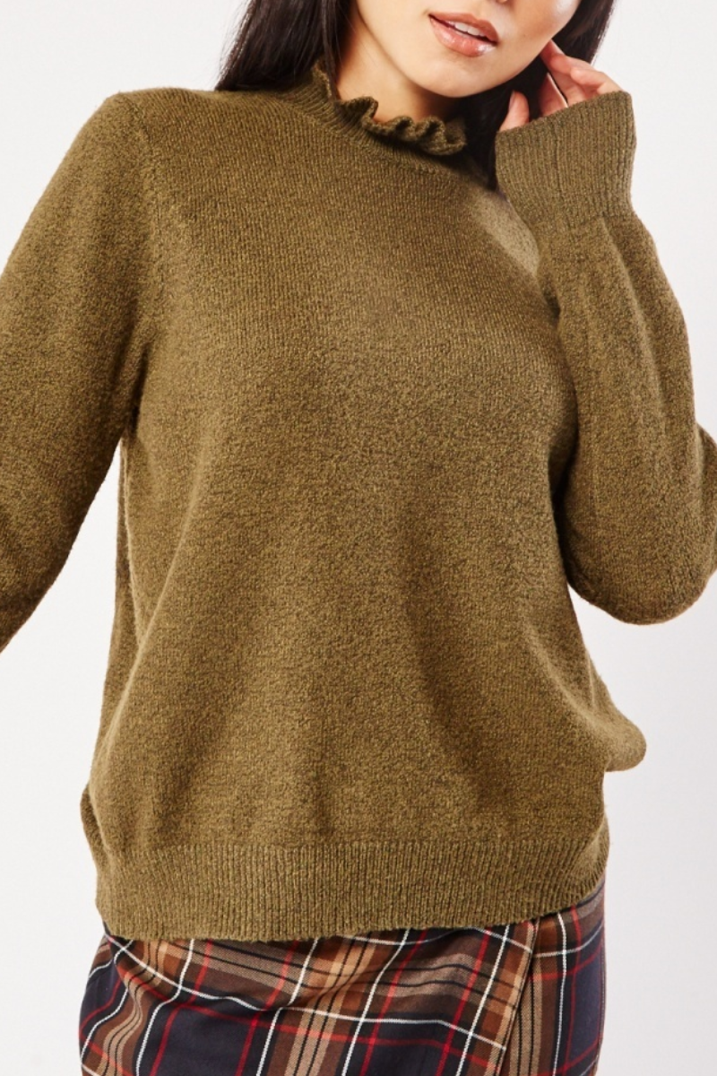 This Ladies Ruched High Neck Knit Top in Khaki is the perfect way to look stylish and chic while keeping cosy. The ribbed trim and ruched neck are designed to keep you comfortable and looking great.