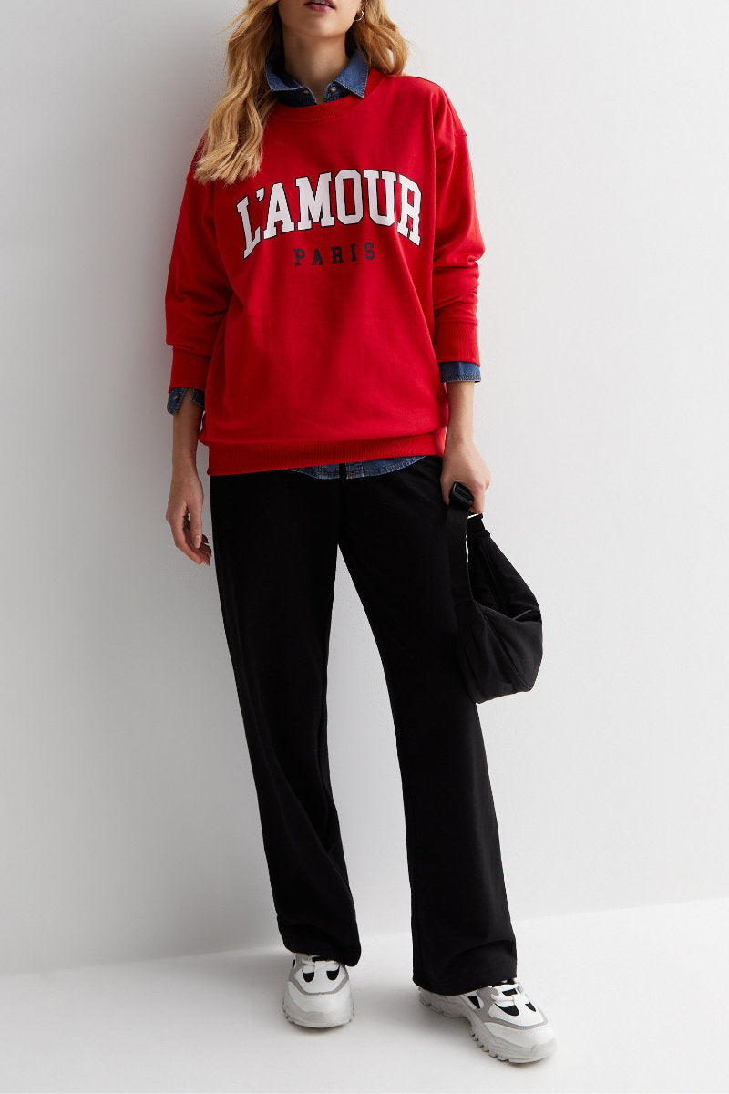 Add a pop of colour and a dash of Parisian flair to your wardrobe with this Red L'Amour Paris Sweatshirt. Featuring a bold white and black "L'Amour Paris" print, this sweatshirt combines casual comfort with a stylish edge. The vibrant red hue makes it a standout piece, perfect for layering over a shirt or wearing solo for a statement look.