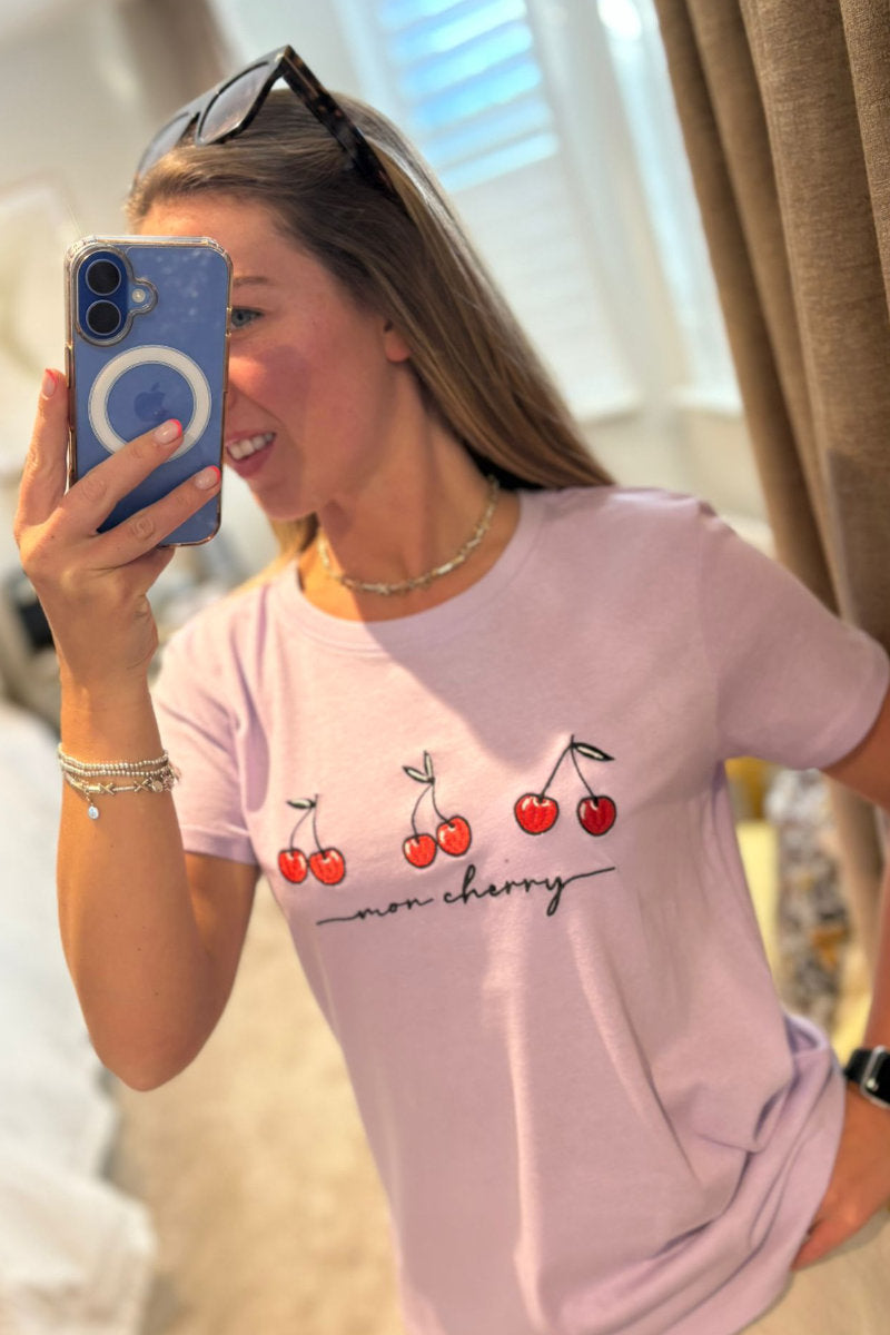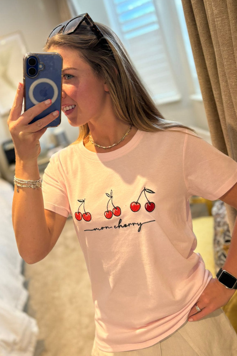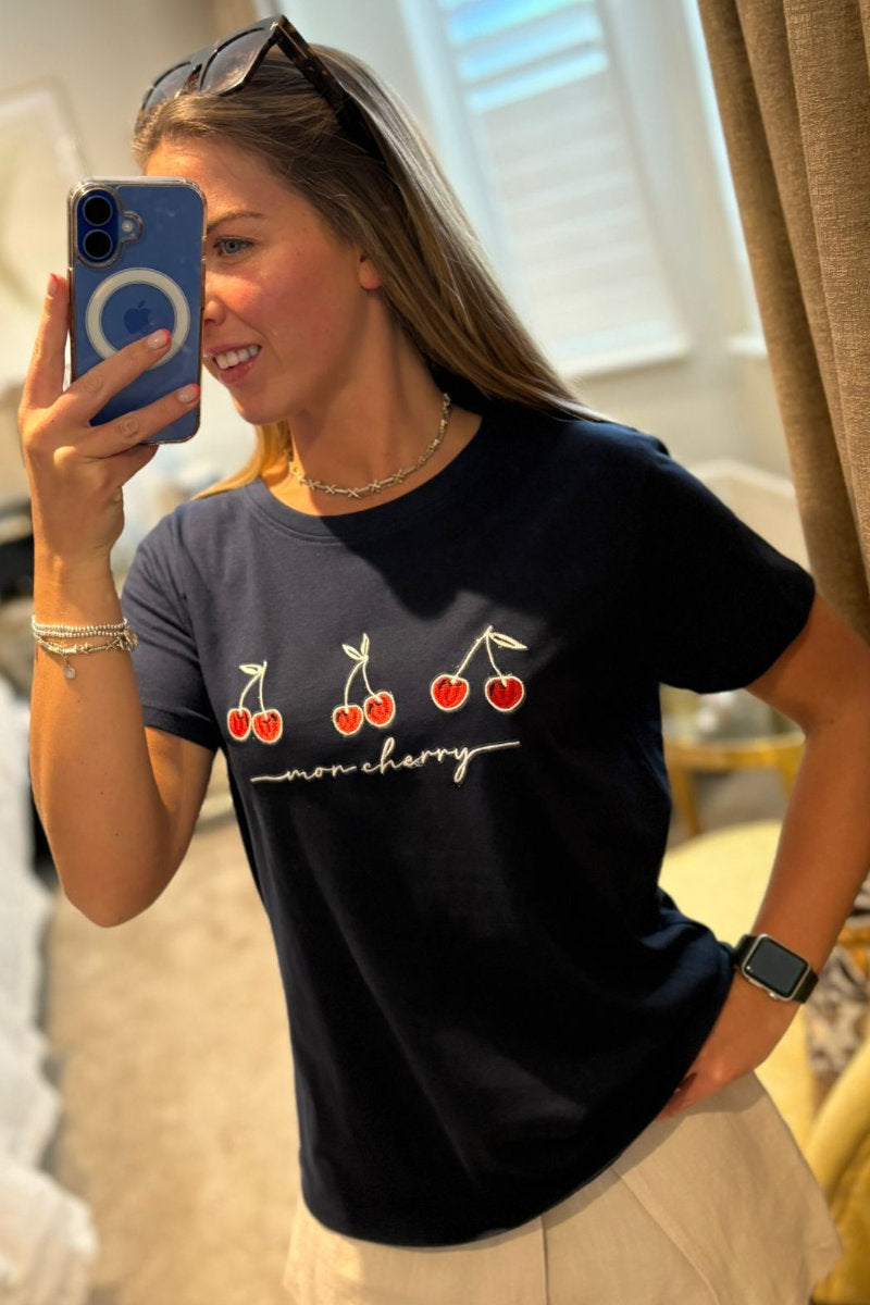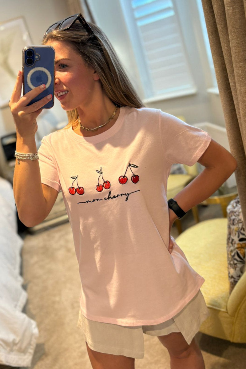 This playful Paramour tee adds a sweet twist to everyday style with its charming cherry print and handwritten "mon cherry" script. Made from soft, breathable cotton, it delivers all-day comfort with a relaxed fit that’s ideal for casual days and sunny strolls. Pair it with denim or shorts for an effortlessly cute look.