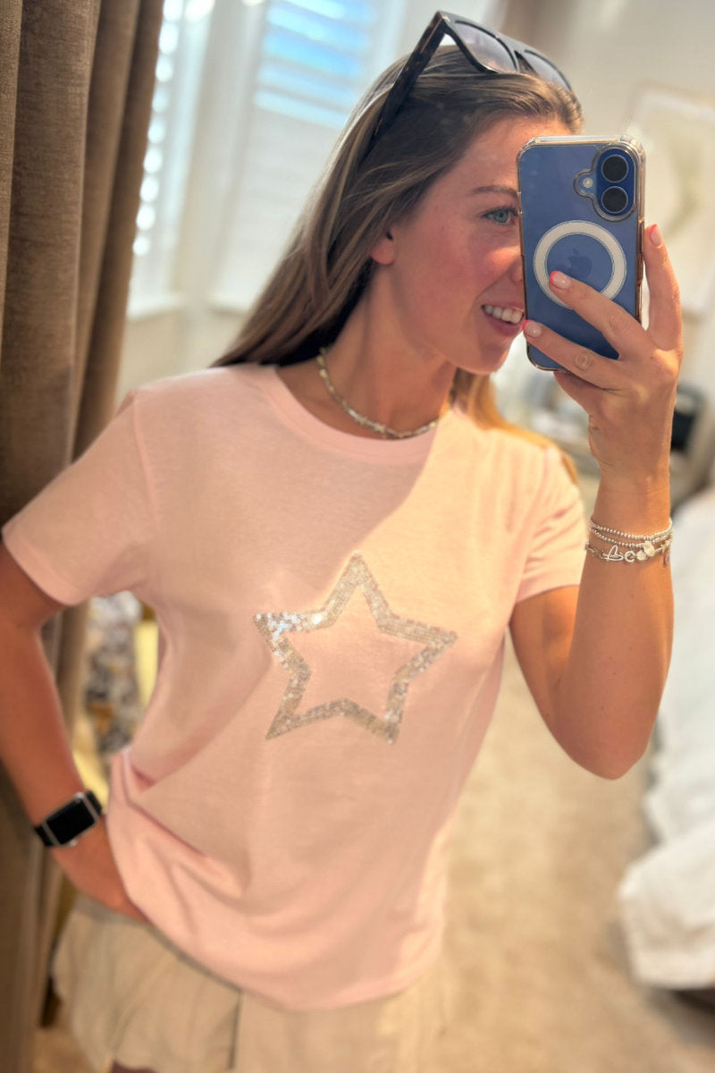 Add a little sparkle to your everyday style with the Paramour Sequin Star T-Shirt. A fresh twist on a classic silhouette, this piece is perfect for those who love relaxed comfort with a hint of shine.
