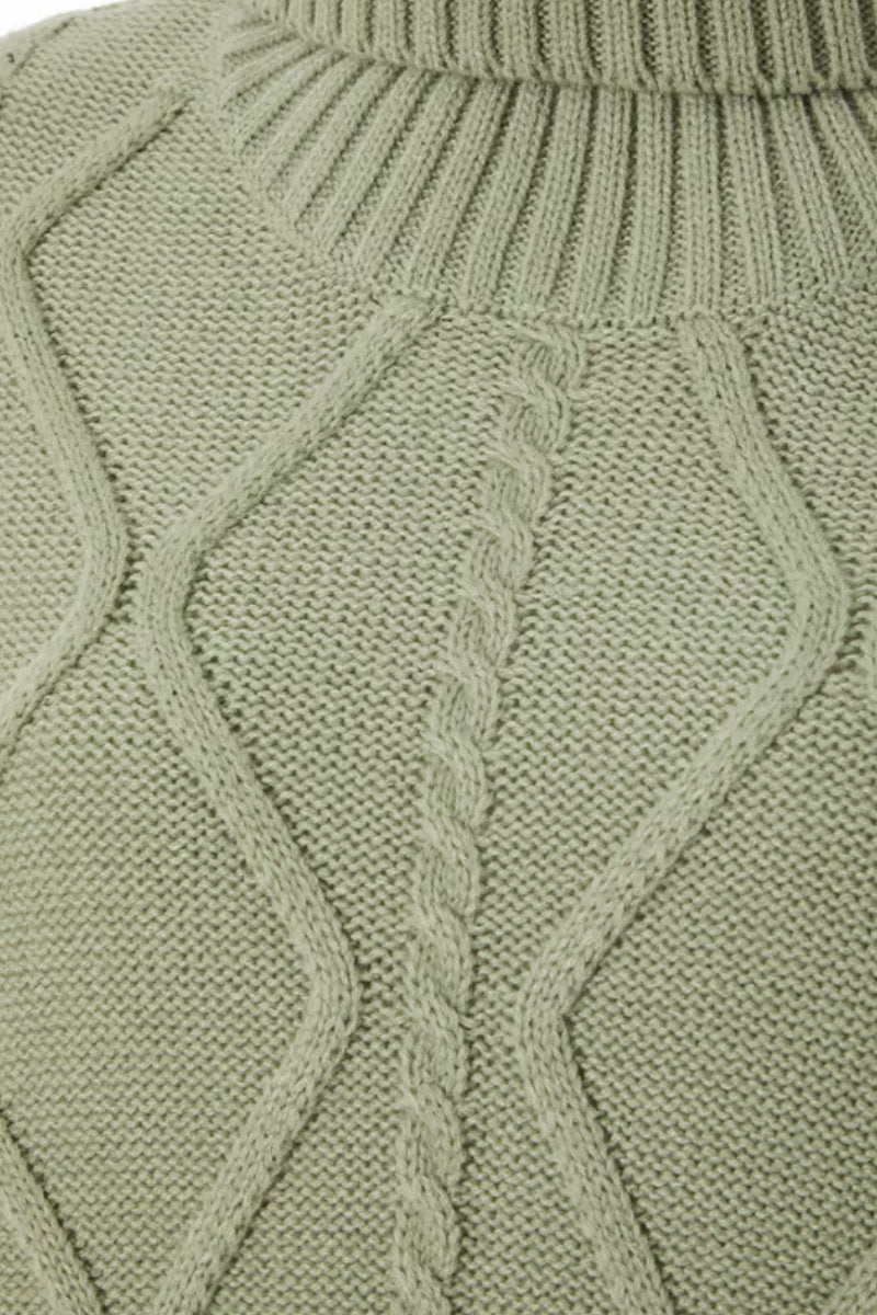 Ex Quiz Sage Tie Side Cable Knit Roll Neck Tunic